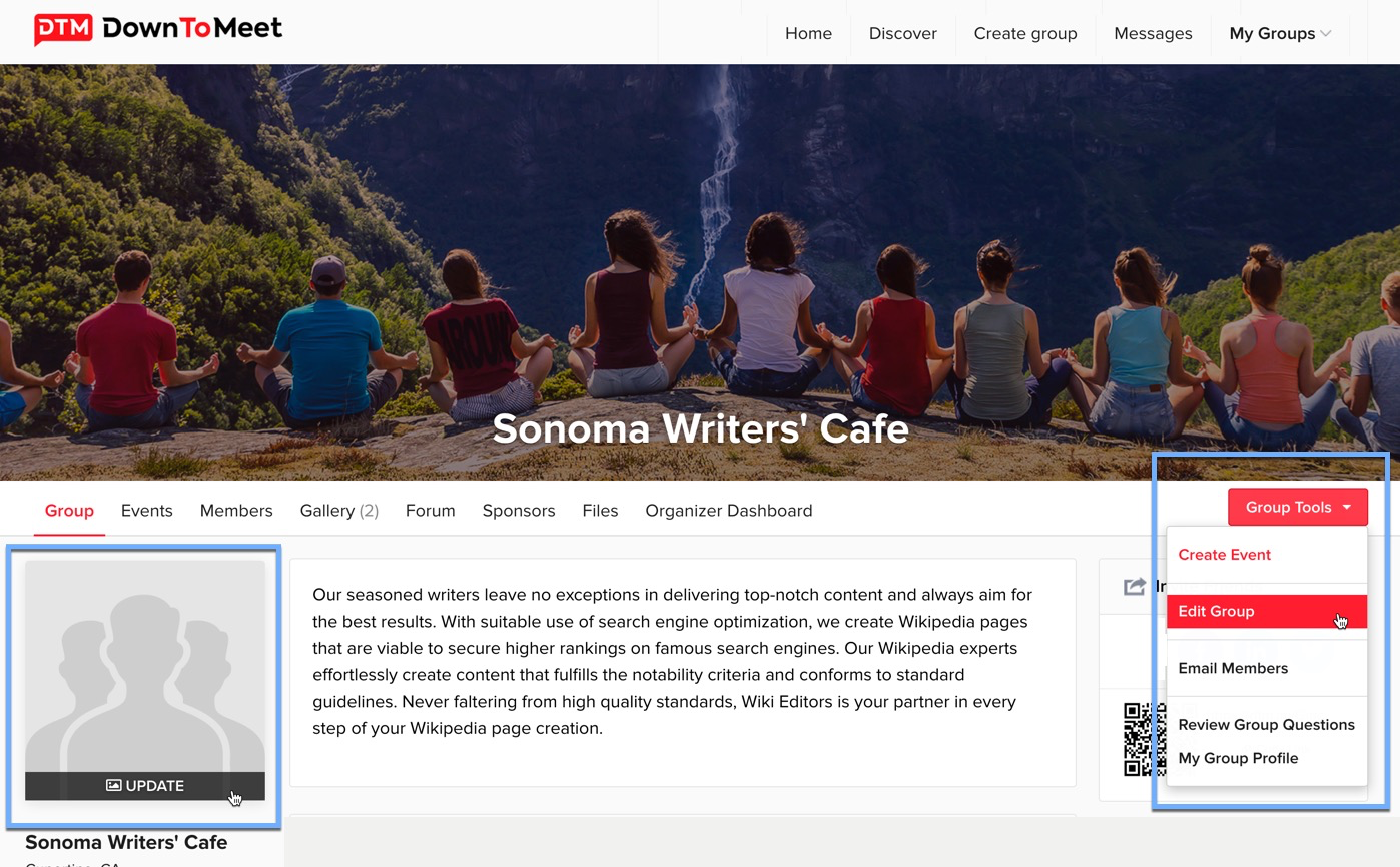 You can edit your group photo at any time. You might want to update it after an event with a photo at the event, for example. To start with, just add something which gives your group a face.