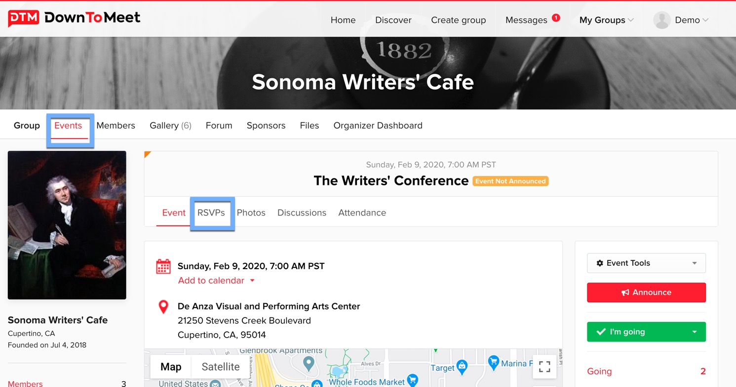 In the event’s RSVP tab, go to Add Attendees. In the Action dropdown menu click Set as Going and the member will be added to the Going list.