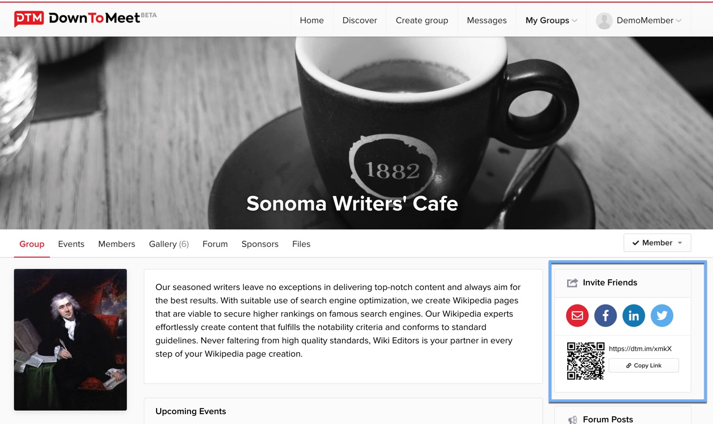 If the Group Organizer has allowed group members to invite friends, you will see the following share options on your Group Page.