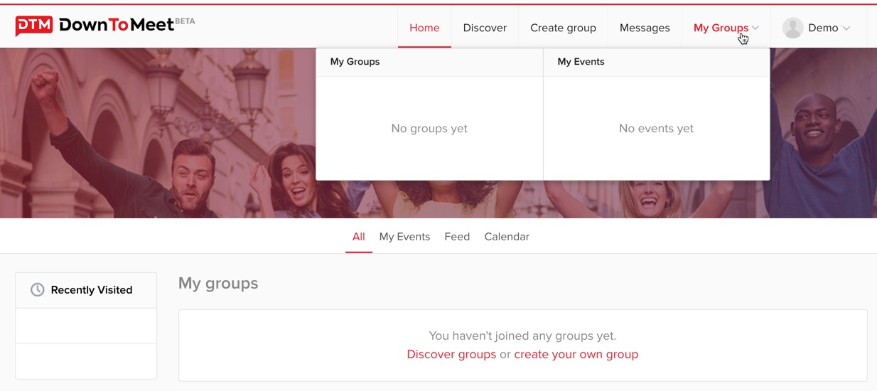 If you haven’t yet been invited to a group and would like to find some to join, click Discover in the top navigation menu.