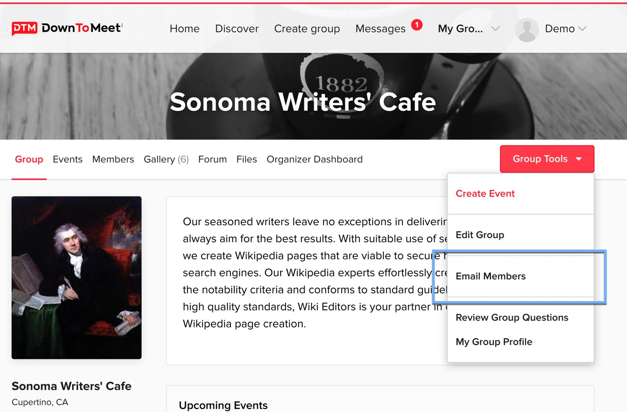 As a Group Organizer, Group Co-Organizer or Event Organizer, you can message your members to let them know additional details about your events, or to send them updates.